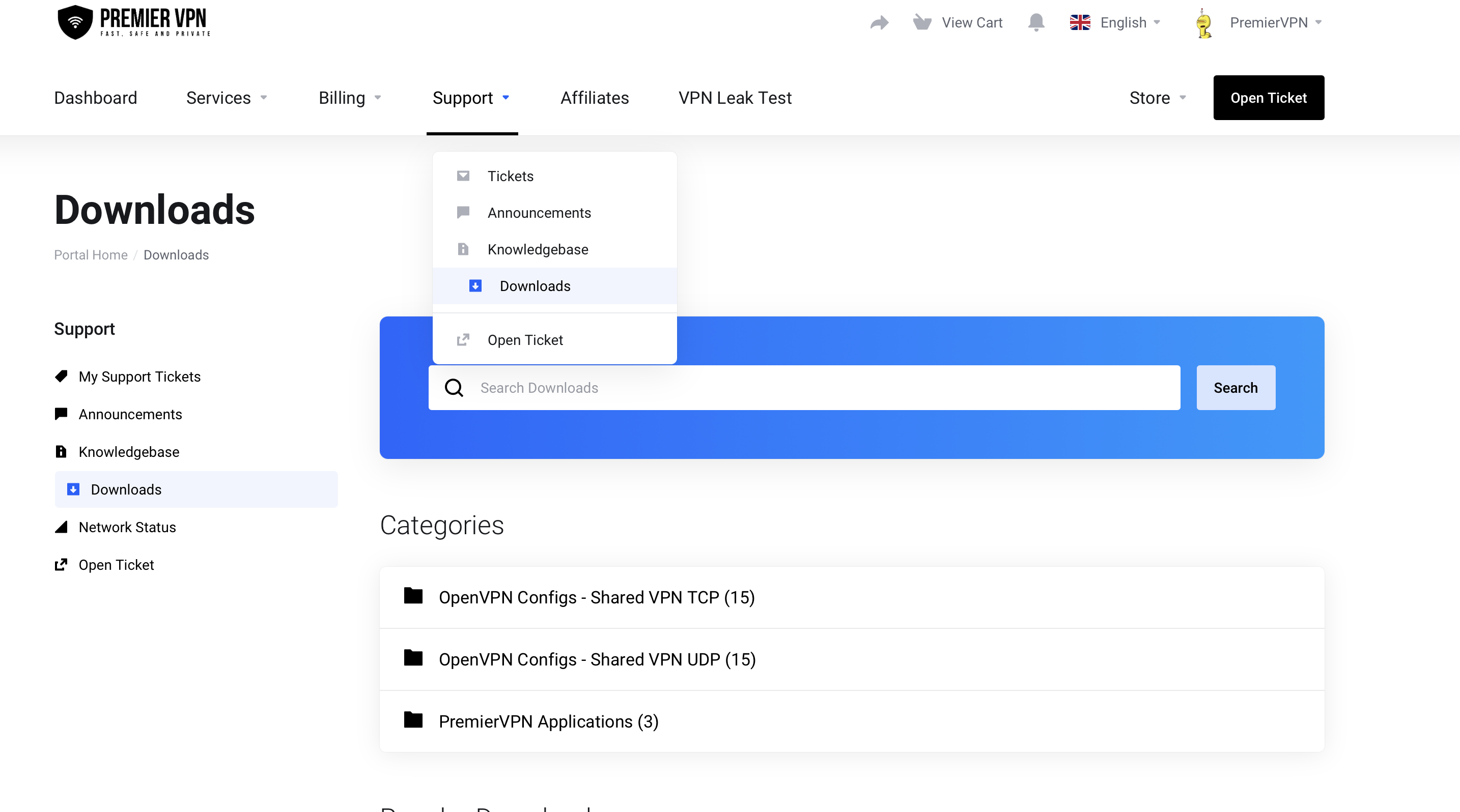 Download the OpenVPN profile you wish to connect with from the PremierVPN downloads page.
