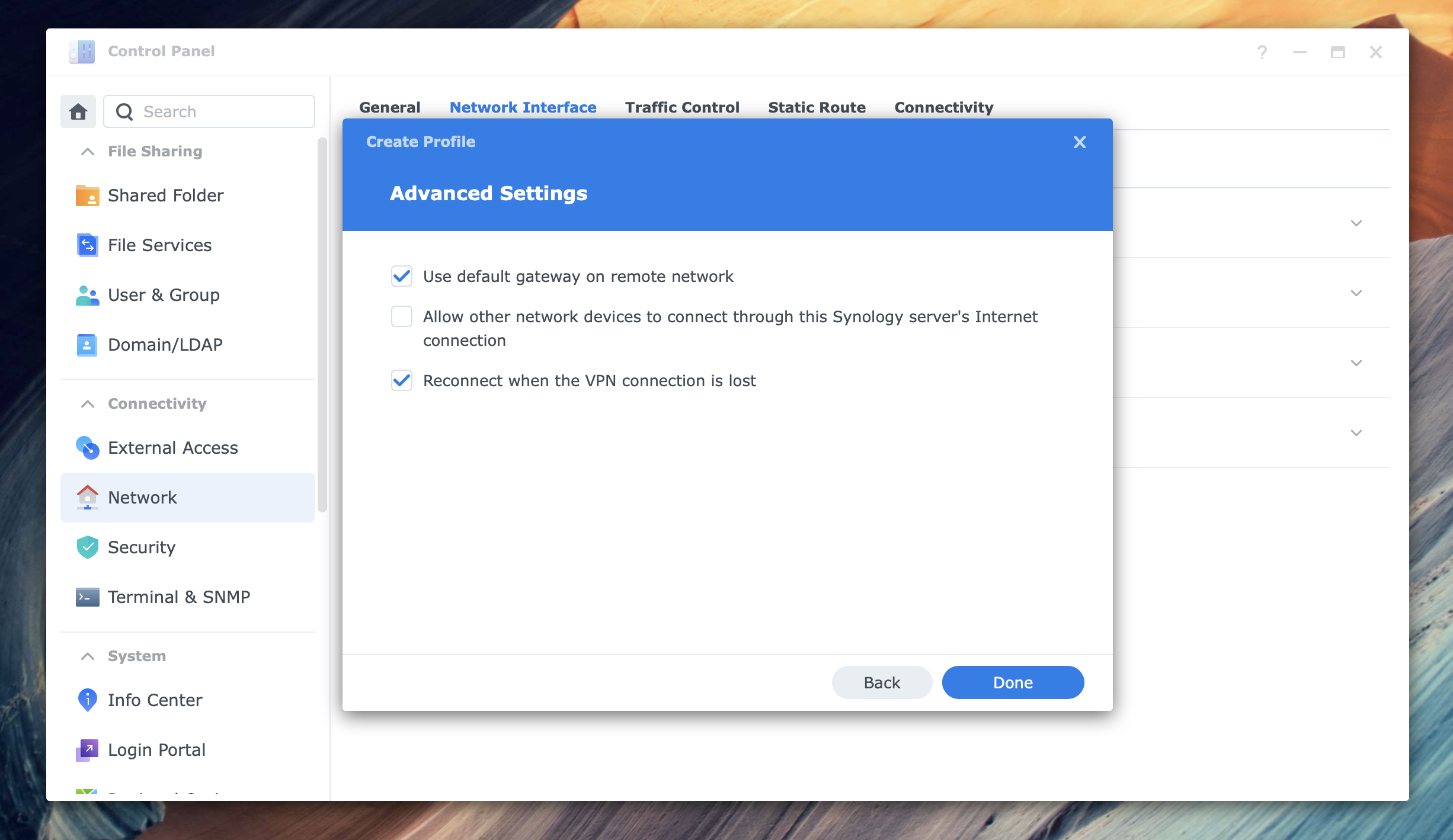 •You can enable Reconnect automatically if you want the NAS to auto-reconnect if the VPN connection drops.